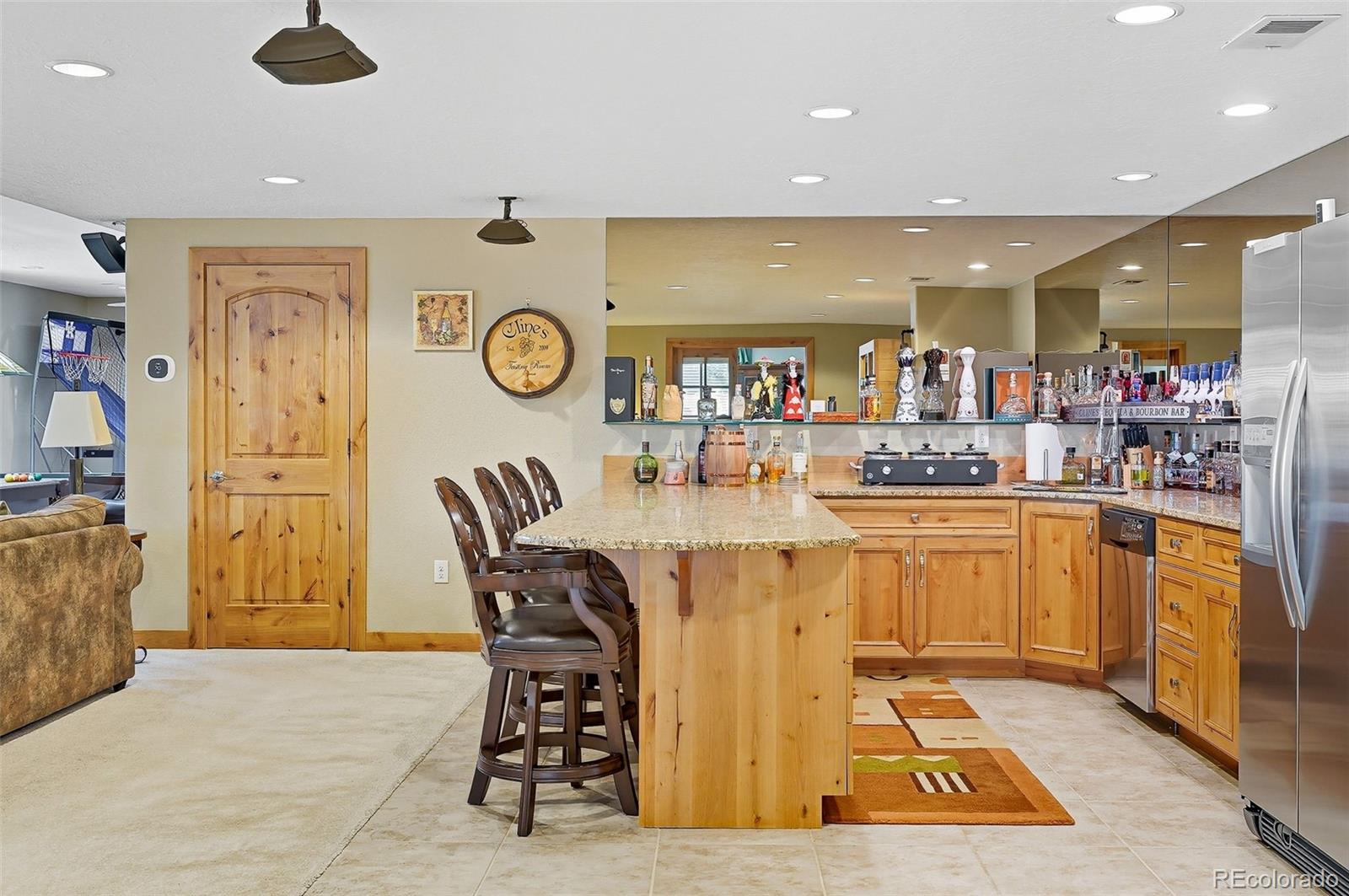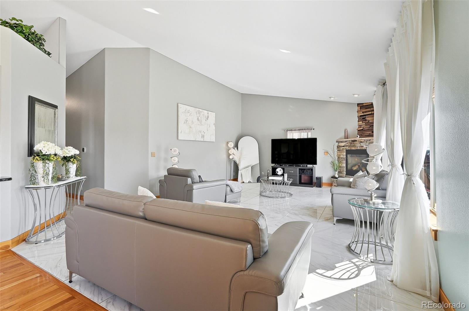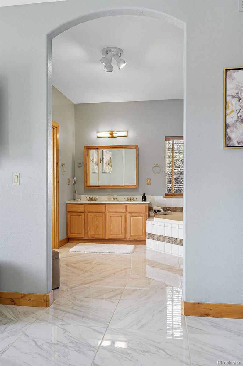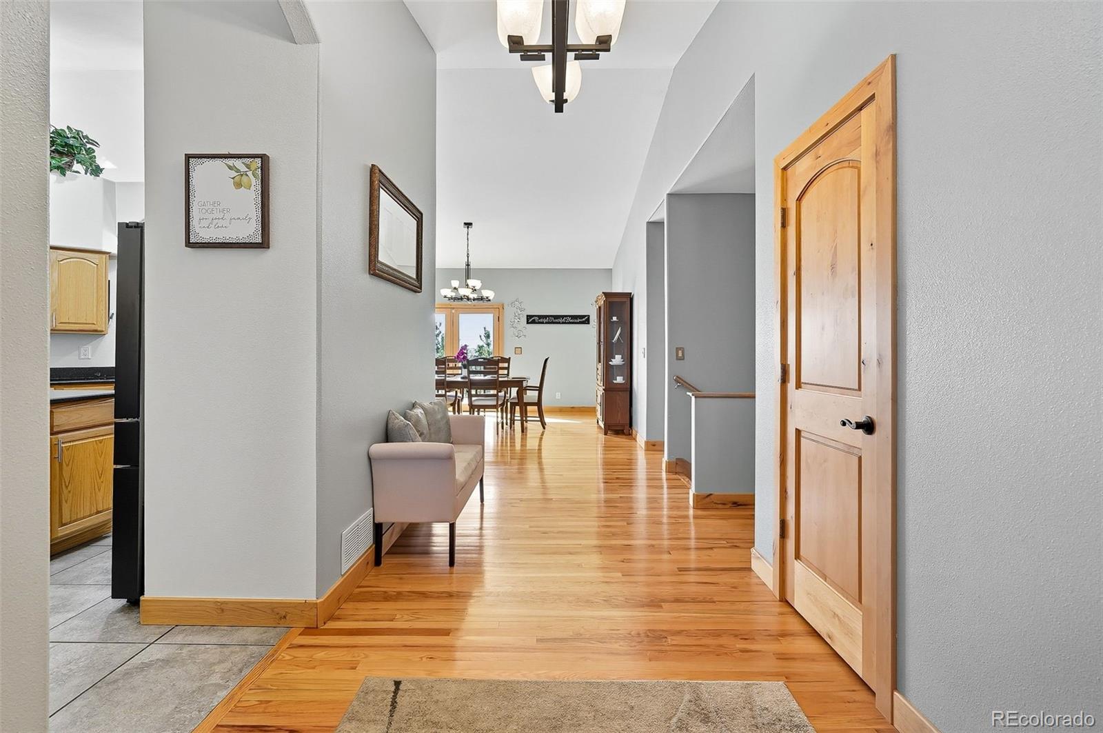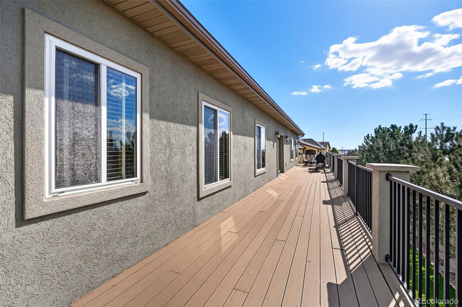Wrapped in mature, thoughtfully designed landscaping unmatched in Fort Lupton, this property feels like a private retreat. Towering trees provide year-round color and privacy, while a grandfathered retaining wall lifts the lot six feet above its neighbors. Behind it, mature evergreens form a lush backdrop and the expansive yard features professionally maintained turf. The result is a setting with sweeping mountain views and a sense of seclusion rarely found in town. Inside, an open floor plan with high ceilings and custom oak doors accented by rich wood trim highlights quality craftsmanship. The kitchen was recently painted and updated with new appliances in the past year. The light-filled living room leads to a huge deck, perfect for taking in mountain views and sunsets. The large main-level primary suite offers plenty of space for a king size bed, a five-piece bath with a soaking tub and dual vanities, plus a large walk-in closet with a fully custom Container Store design. Two additional generous sized bedrooms and baths provide space for guests, kids, or a home office. The laundry/mud room connects to the oversized three-car garage with the option for electric car charging. The walkout basement includes a second kitchen with granite bar, refrigerator, sink, and dishwasher, plus generous recreation space, two more bedrooms, and a full bath--ideal for an in-law suite. The basement opens to a covered patio and yard designed for entertaining or play. Two furnaces, two AC units, and two water heaters ensure year-round comfort. Recent updates include a new roof with upgraded shingles, three new garage doors, new gutters with discreet under-mount drainage, and a one-year-old washer and dryer. This is a rare opportunity to own a home where extraordinary landscaping meets panoramic mountain views.