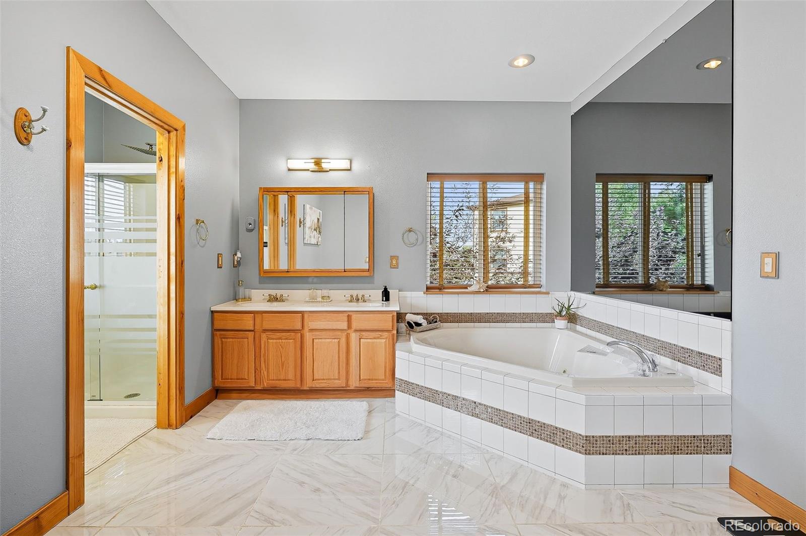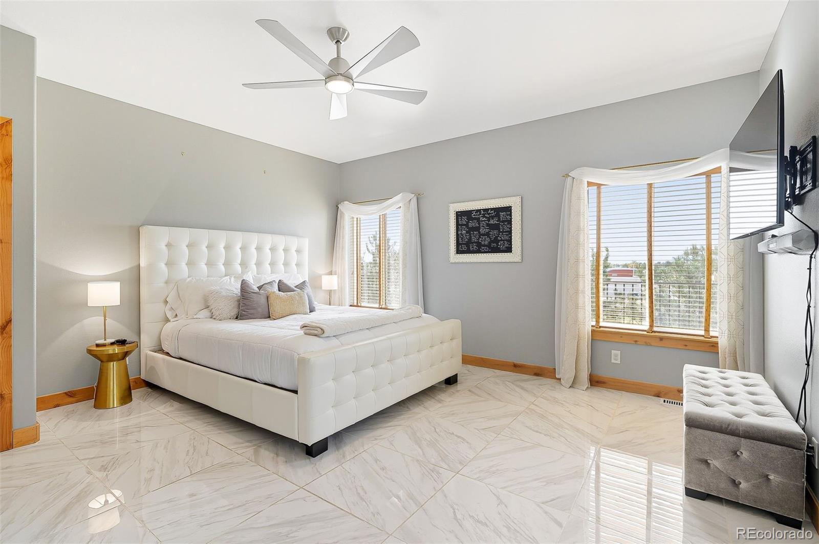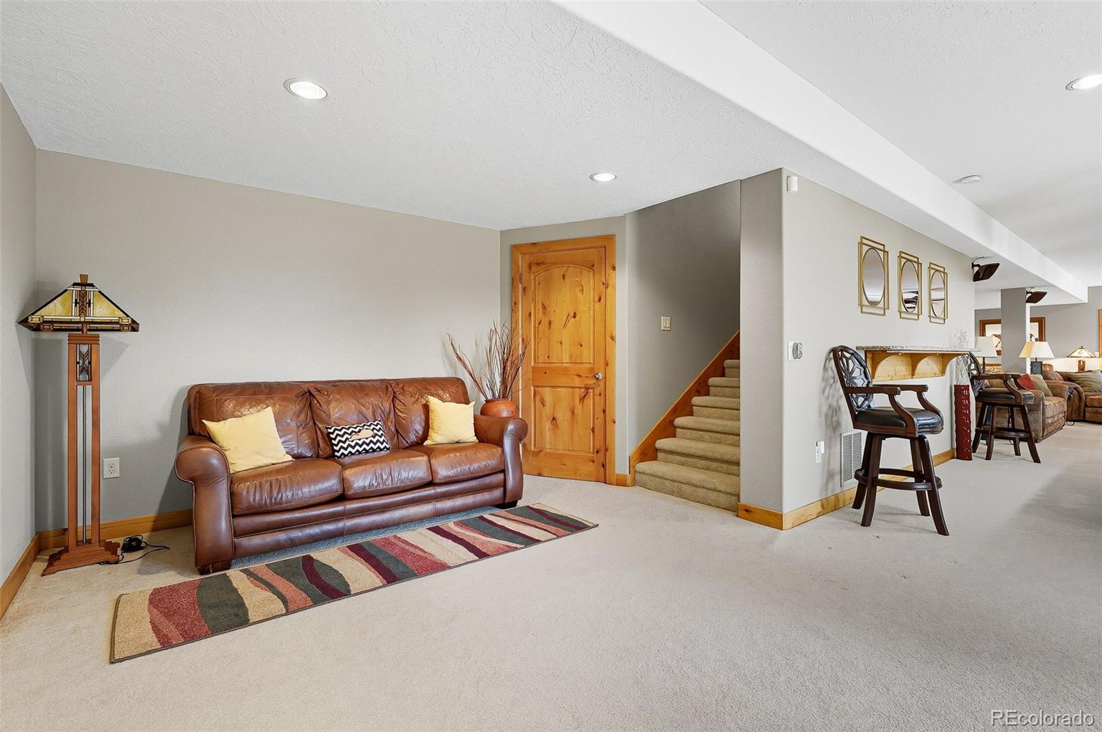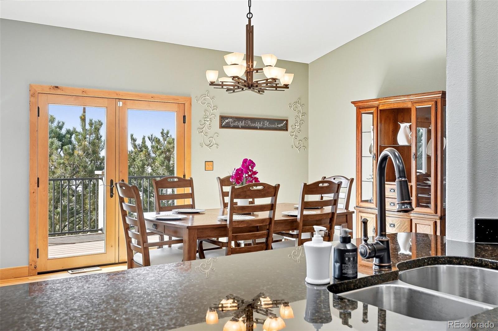 Wrapped in mature, thoughtfully designed landscaping unmatched in Fort Lupton, this property feels like a private retreat. Towering trees provide year-round color and privacy, while a grandfathered retaining wall lifts the lot six feet above its neighbors. Behind it, mature evergreens form a lush backdrop and the expansive yard features professionally maintained turf. The result is a setting with sweeping mountain views and a sense of seclusion rarely found in town. Inside, an open floor plan with high ceilings and custom oak doors accented by rich wood trim highlights quality craftsmanship. The kitchen was recently painted and updated with new appliances in the past year. The light-filled living room leads to a huge deck, perfect for taking in mountain views and sunsets. The large main-level primary suite offers plenty of space for a king size bed, a five-piece bath with a soaking tub and dual vanities, plus a large walk-in closet with a fully custom Container Store design. Two additional generous sized bedrooms and baths provide space for guests, kids, or a home office. The laundry/mud room connects to the oversized three-car garage with the option for electric car charging. The walkout basement includes a second kitchen with granite bar, refrigerator, sink, and dishwasher, plus generous recreation space, two more bedrooms, and a full bath--ideal for an in-law suite. The basement opens to a covered patio and yard designed for entertaining or play. Two furnaces, two AC units, and two water heaters ensure year-round comfort. Recent updates include a new roof with upgraded shingles, three new garage doors, new gutters with discreet under-mount drainage, and a one-year-old washer and dryer. This is a rare opportunity to own a home where extraordinary landscaping meets panoramic mountain views.