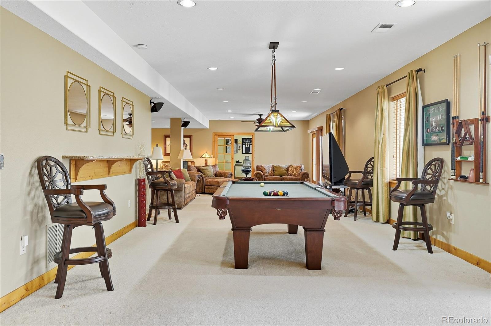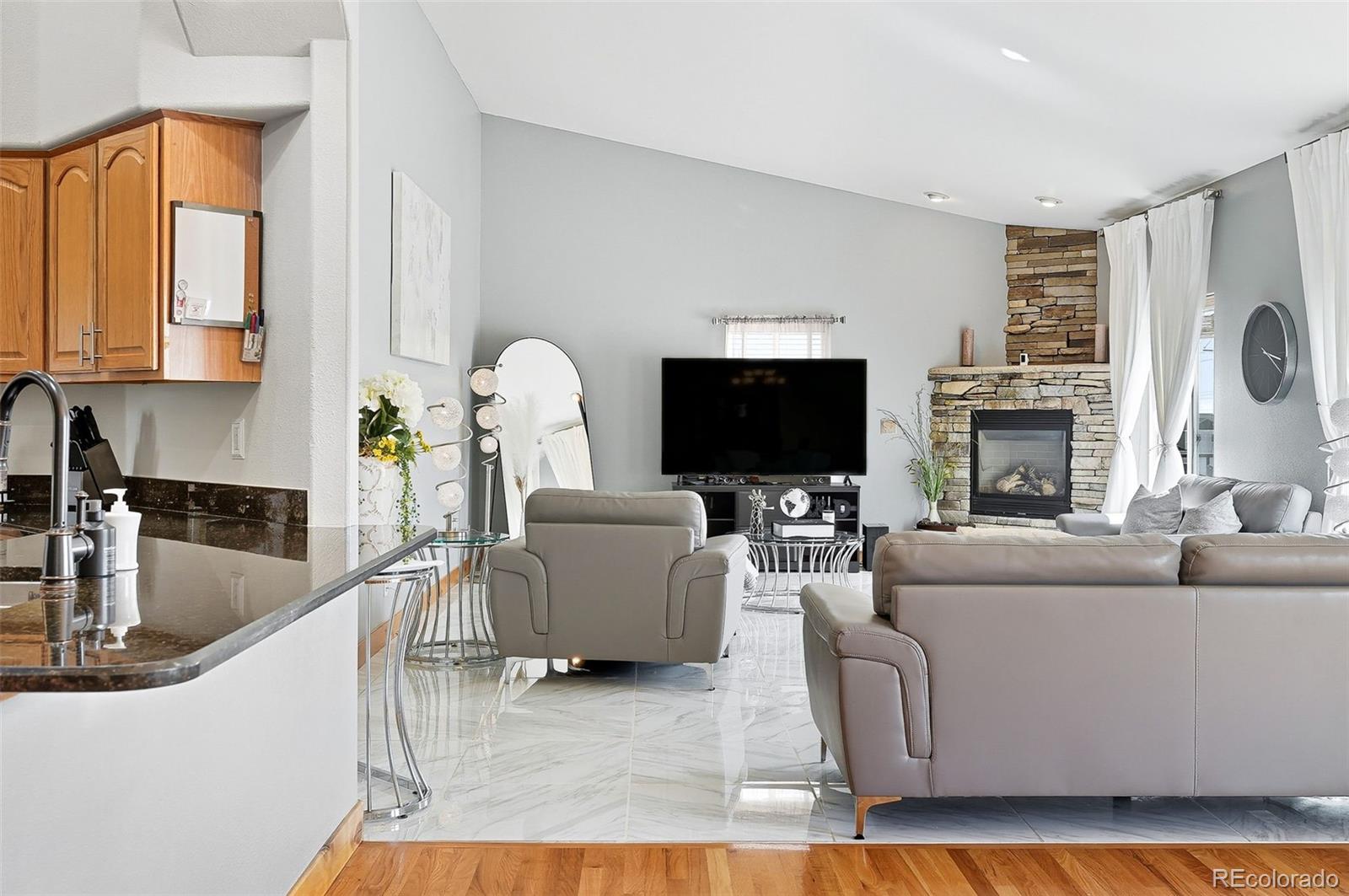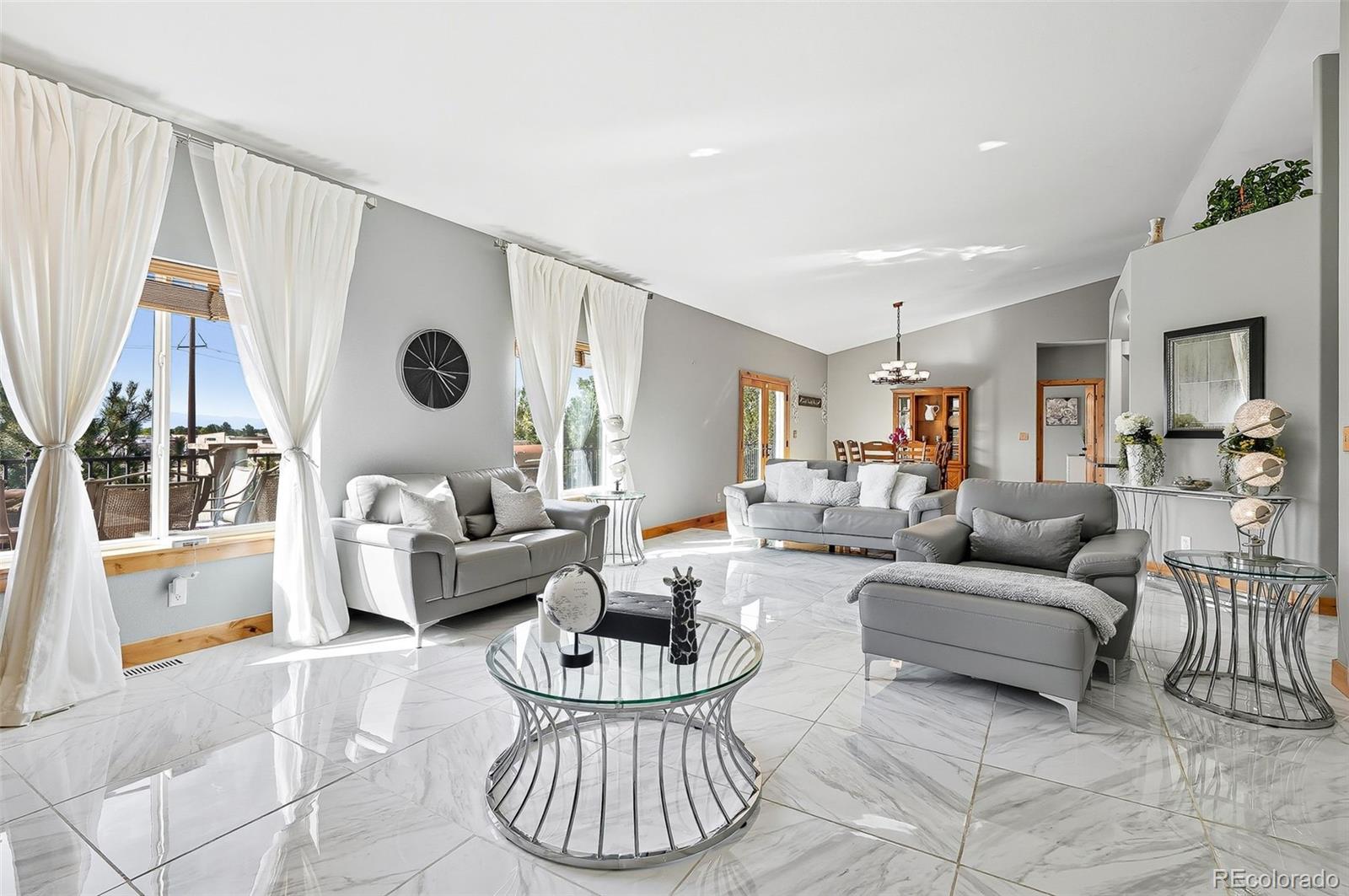Wrapped in mature, thoughtfully designed landscaping unmatched in Fort Lupton, this property feels like a private retreat. Towering trees provide year-round color and privacy, while a grandfathered retaining wall lifts the lot six feet above its neighbors. Behind it, mature evergreens form a lush backdrop and the expansive yard features professionally maintained turf. The result is a setting with sweeping mountain views and a sense of seclusion rarely found in town. Inside, an open floor plan with high ceilings and custom oak doors accented by rich wood trim highlights quality craftsmanship. The kitchen was recently painted and updated with new appliances in the past year. The light-filled living room leads to a huge deck, perfect for taking in mountain views and sunsets. The large main-level primary suite offers plenty of space for a king size bed, a five-piece bath with a soaking tub and dual vanities, plus a large walk-in closet with a fully custom Container Store design. Two additional generous sized bedrooms and baths provide space for guests, kids, or a home office. The laundry/mud room connects to the oversized three-car garage with the option for electric car charging. The walkout basement includes a second kitchen with granite bar, refrigerator, sink, and dishwasher, plus generous recreation space, two more bedrooms, and a full bath--ideal for an in-law suite. The basement opens to a covered patio and yard designed for entertaining or play. Two furnaces, two AC units, and two water heaters ensure year-round comfort. Recent updates include a new roof with upgraded shingles, three new garage doors, new gutters with discreet under-mount drainage, and a one-year-old washer and dryer. This is a rare opportunity to own a home where extraordinary landscaping meets panoramic mountain views.