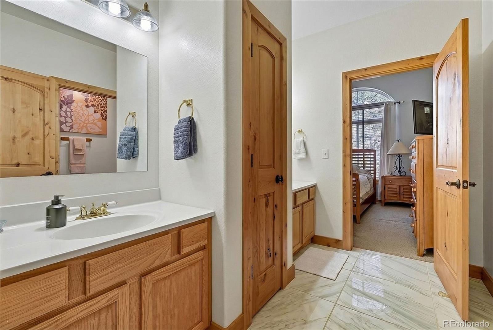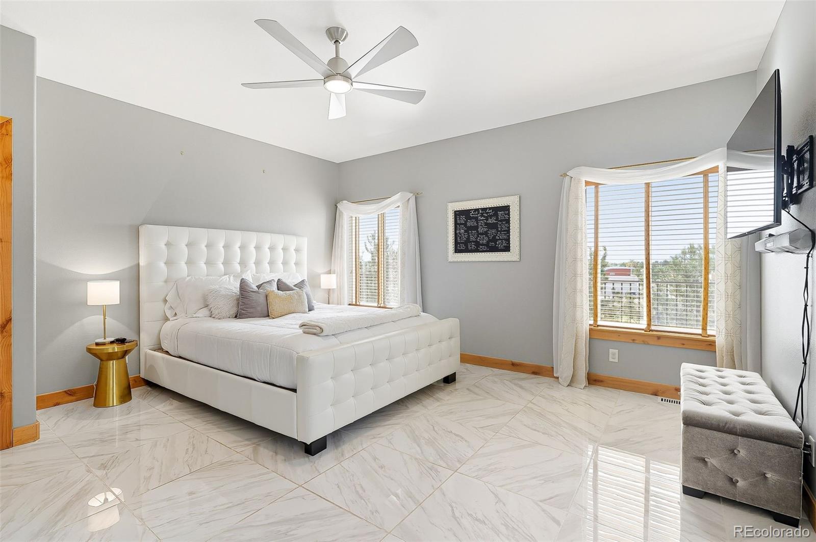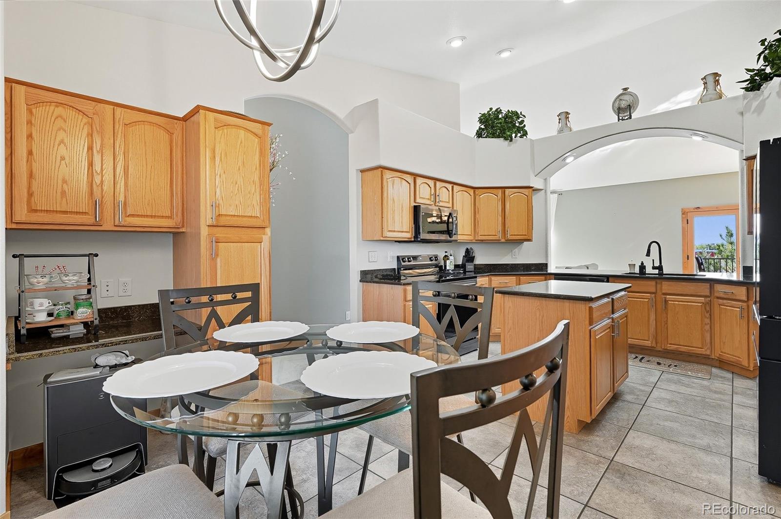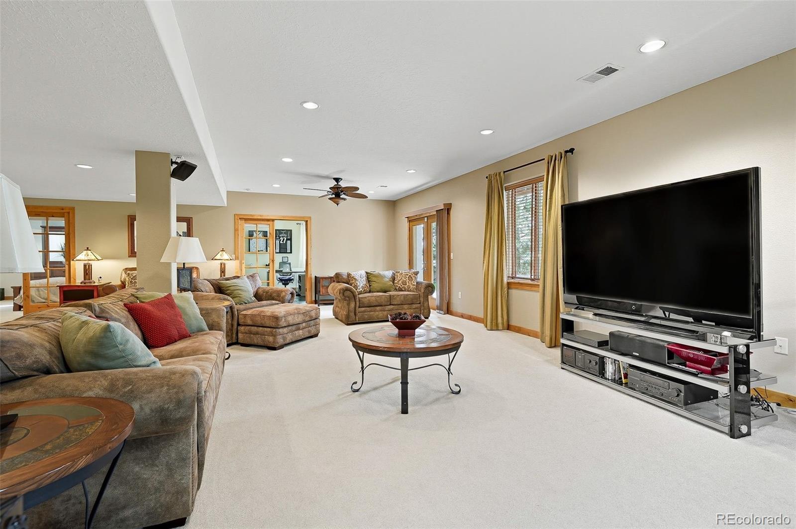 Wrapped in mature, thoughtfully designed landscaping unmatched in Fort Lupton, this property feels like a private retreat. Towering trees provide year-round color and privacy, while a grandfathered retaining wall lifts the lot six feet above its neighbors. Behind it, mature evergreens form a lush backdrop and the expansive yard features professionally maintained turf. The result is a setting with sweeping mountain views and a sense of seclusion rarely found in town. Inside, an open floor plan with high ceilings and custom oak doors accented by rich wood trim highlights quality craftsmanship. The kitchen was recently painted and updated with new appliances in the past year. The light-filled living room leads to a huge deck, perfect for taking in mountain views and sunsets. The large main-level primary suite offers plenty of space for a king size bed, a five-piece bath with a soaking tub and dual vanities, plus a large walk-in closet with a fully custom Container Store design. Two additional generous sized bedrooms and baths provide space for guests, kids, or a home office. The laundry/mud room connects to the oversized three-car garage with the option for electric car charging. The walkout basement includes a second kitchen with granite bar, refrigerator, sink, and dishwasher, plus generous recreation space, two more bedrooms, and a full bath--ideal for an in-law suite. The basement opens to a covered patio and yard designed for entertaining or play. Two furnaces, two AC units, and two water heaters ensure year-round comfort. Recent updates include a new roof with upgraded shingles, three new garage doors, new gutters with discreet under-mount drainage, and a one-year-old washer and dryer. This is a rare opportunity to own a home where extraordinary landscaping meets panoramic mountain views.