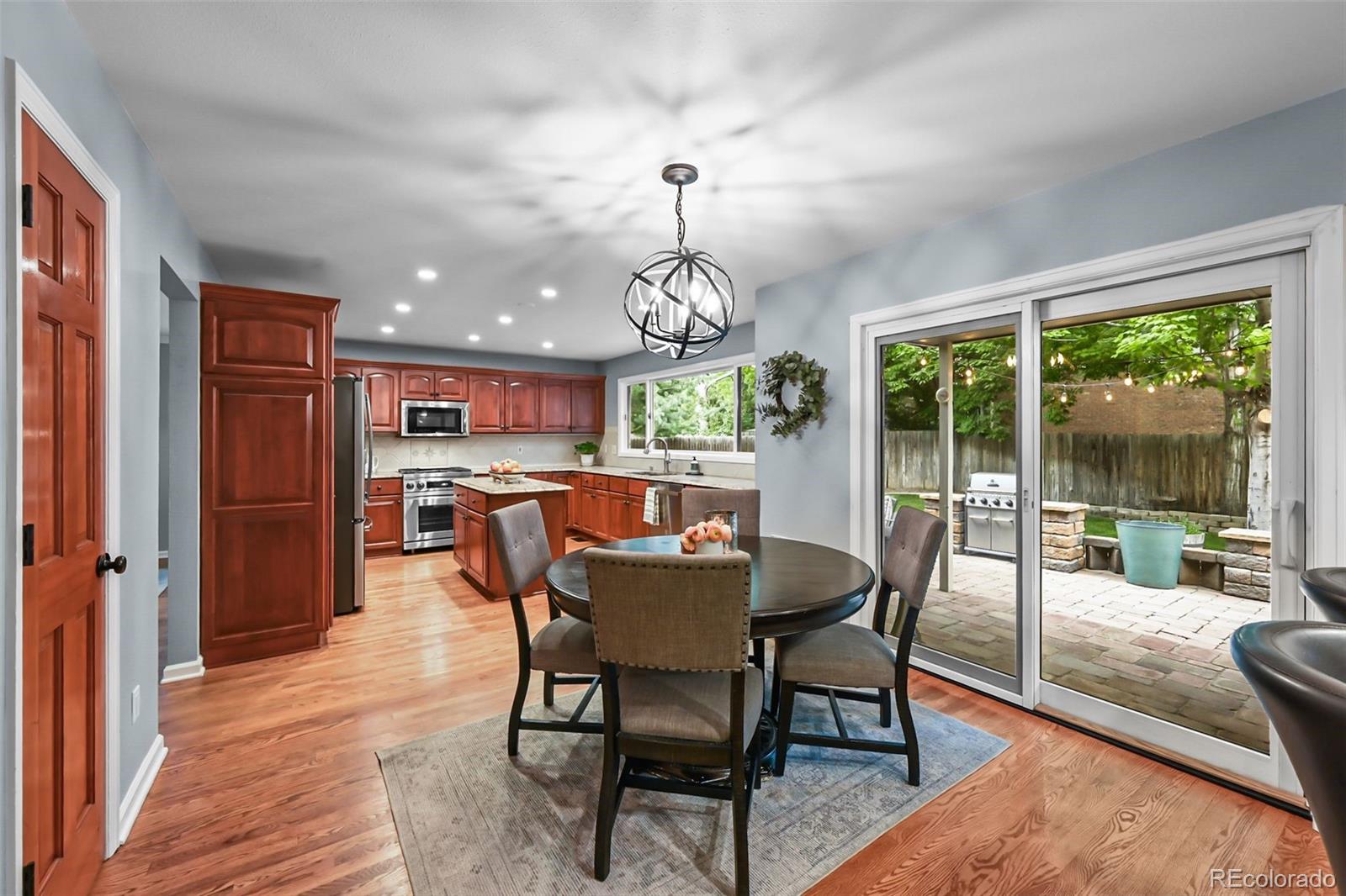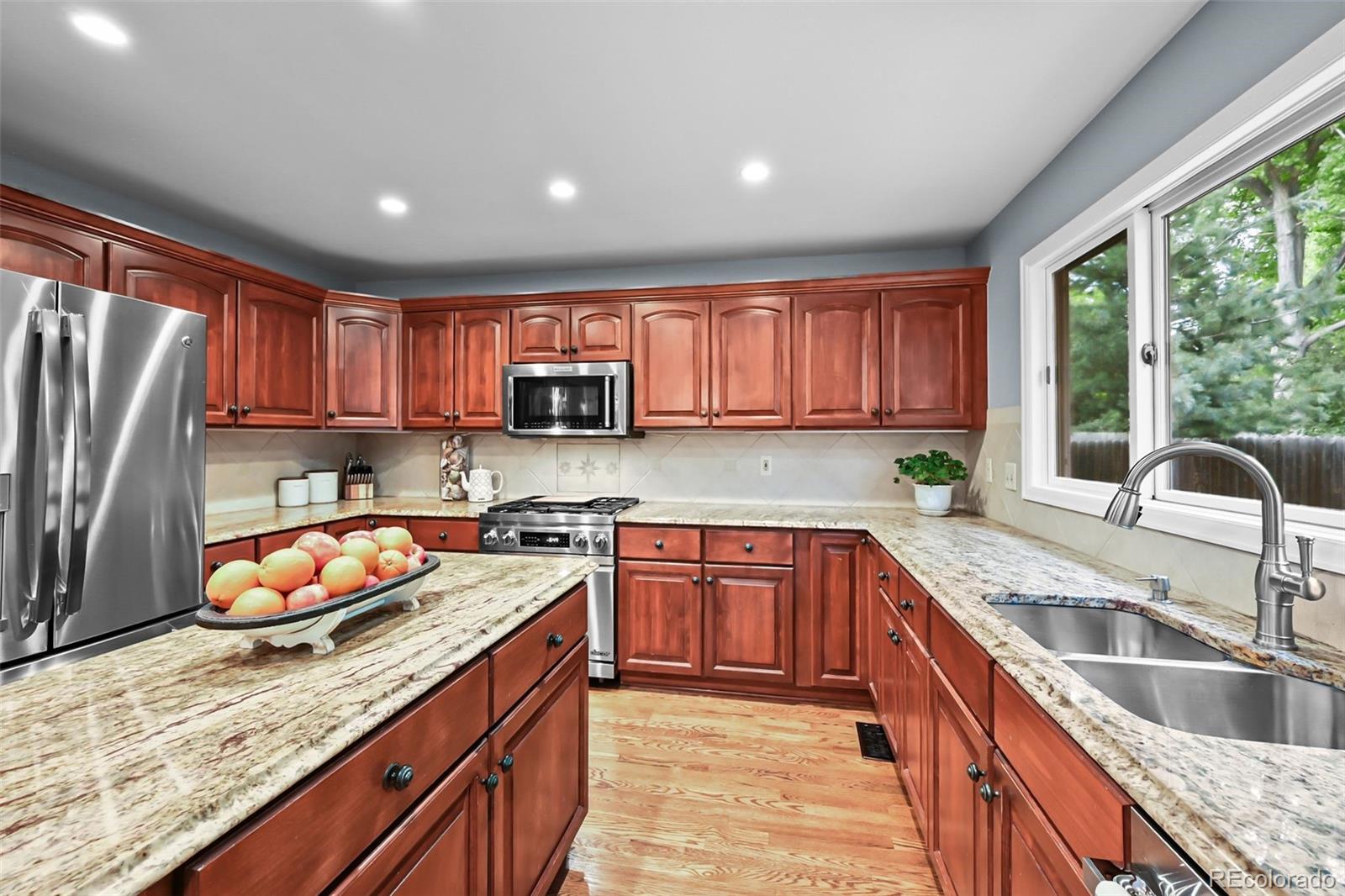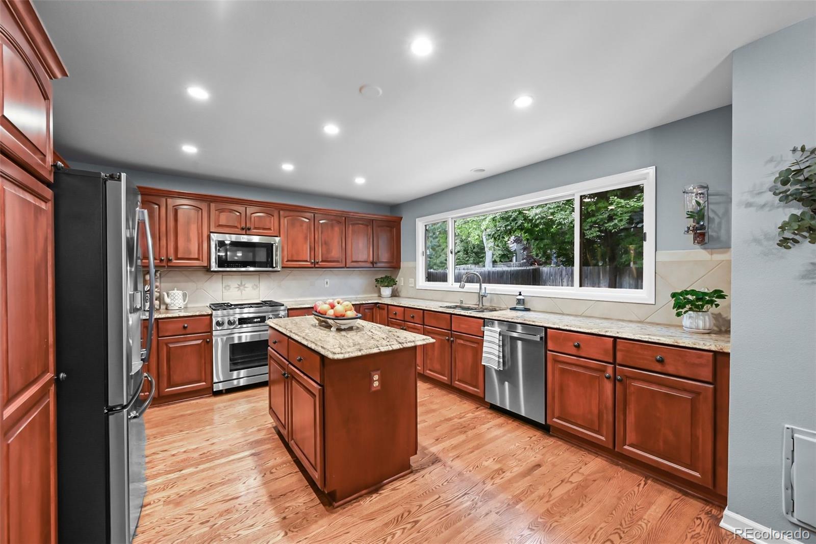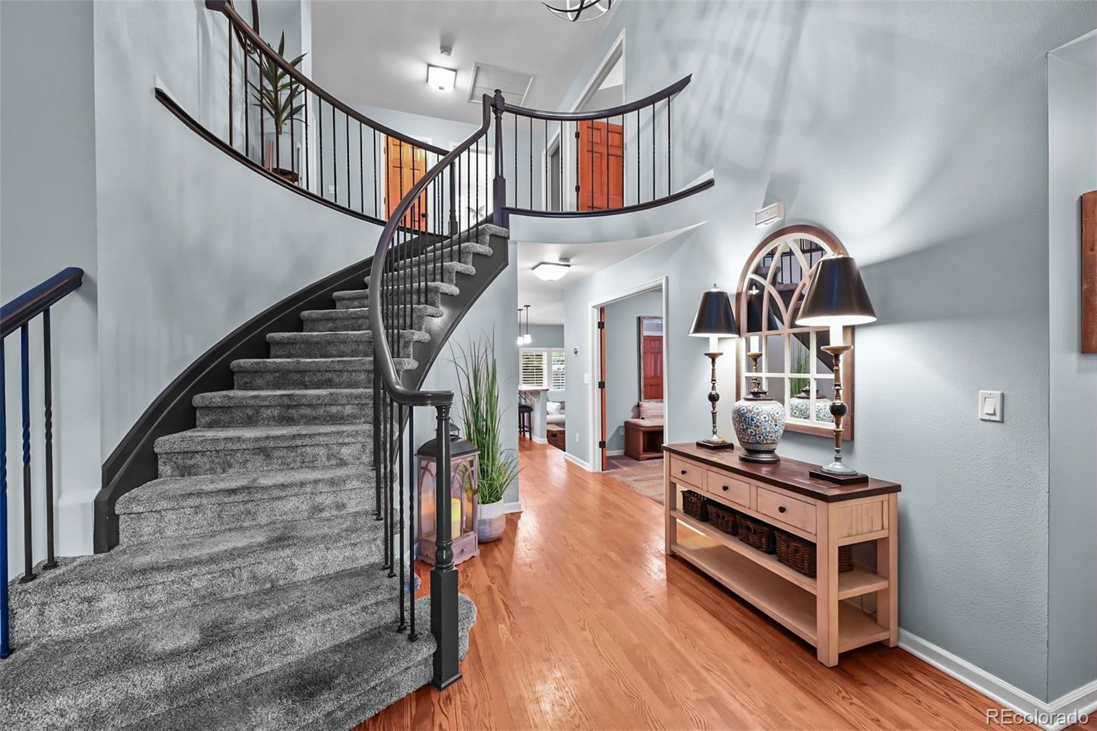 Tucked beneath a canopy of mature trees on a peaceful corner lot in the coveted Southbridge Knolls neighborhood, this dreamy Littleton retreat feels like a hidden gem wrapped in nature. From the moment you step inside, you're greeted with a grand entrance soaring vaulted ceilings, and a curved staircase that sets the tone for what's to come. With 5 spacious bedrooms and 4 beautifully appointed bathrooms, there's room for everyone to unwind and feel at home. The heart of the home? A chef's kitchen that delivers on every level, perfectly outfitted to host dinner parties, pancake mornings, or late-night wine and charcuterie. The main floor also offers a flexible bedroom that doubles as a serene home office, while the fully finished basement is all about fun. Picture cozy movie nights in your personal home theatre or game nights that last into the early hours. Out back, your private oasis awaits: an expansive patio, built-in grill, and so much lush greenery it feels like you're miles from it all. And when you're ready to step out? You're in one of Littleton's best-loved pockets. Just minutes to the trails at South Platte Park and Chatfield Reservoir for all your paddleboarding and hiking dreams. Enjoy dining at farm-to-table hotspots like The Alley or sushi at Namiko's. Grab coffee at Ground Up, shop local at Aspen Grove, and don't miss the concerts and charm of Historic Downtown Littleton. This isn't just a house--it's a lifestyle. And it's calling you home.