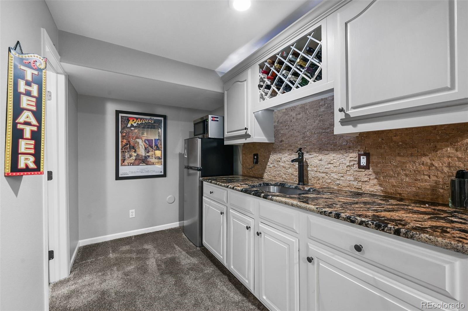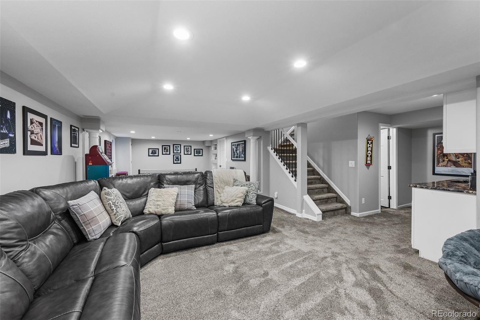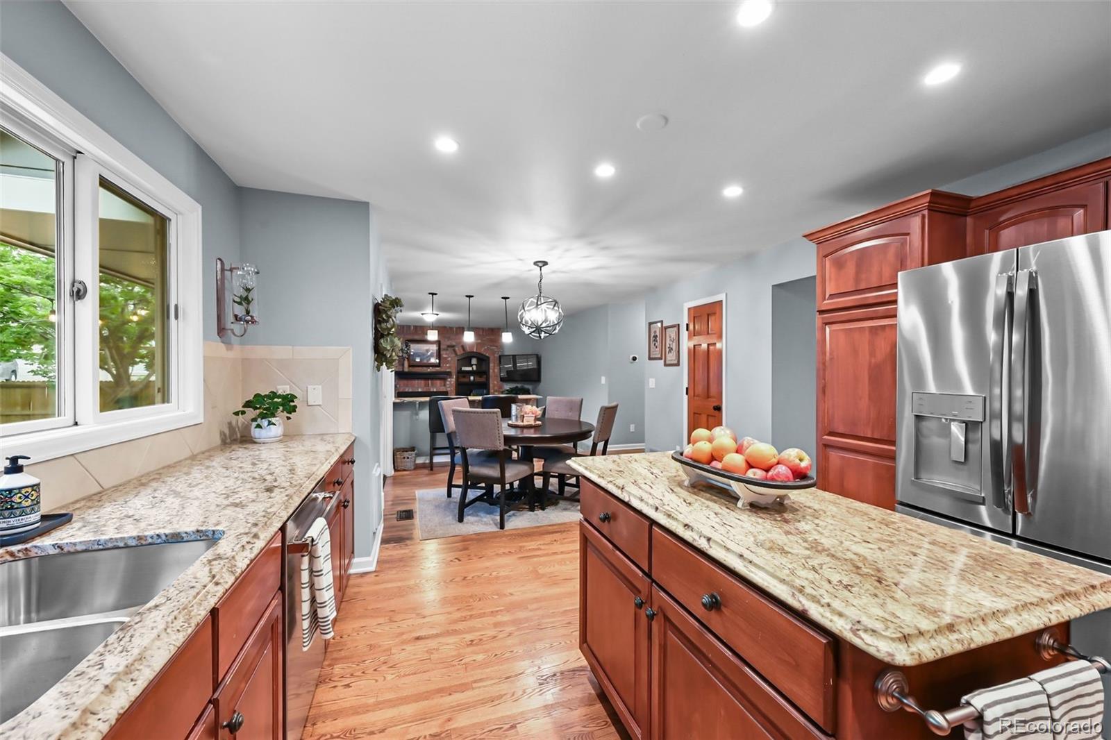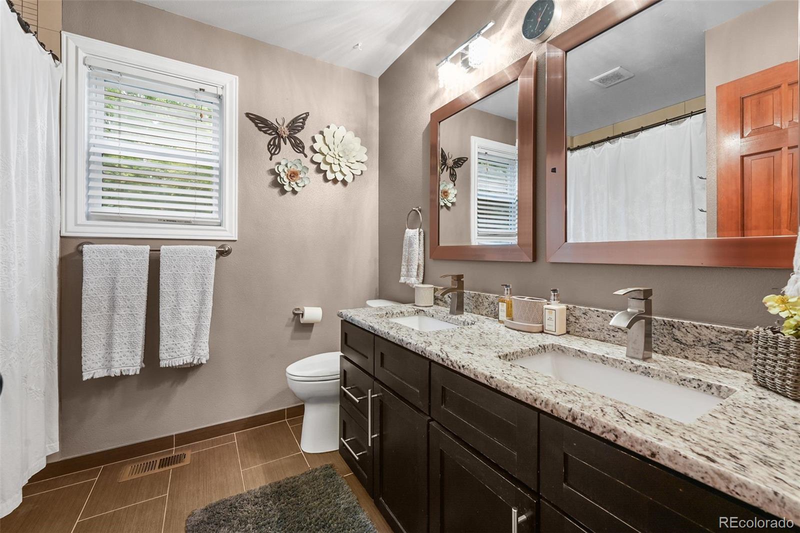 Tucked beneath a canopy of mature trees on a peaceful corner lot in the coveted Southbridge Knolls neighborhood, this dreamy Littleton retreat feels like a hidden gem wrapped in nature. From the moment you step inside, you're greeted with a grand entrance soaring vaulted ceilings, and a curved staircase that sets the tone for what's to come. With 5 spacious bedrooms and 4 beautifully appointed bathrooms, there's room for everyone to unwind and feel at home. The heart of the home? A chef's kitchen that delivers on every level, perfectly outfitted to host dinner parties, pancake mornings, or late-night wine and charcuterie. The main floor also offers a flexible bedroom that doubles as a serene home office, while the fully finished basement is all about fun. Picture cozy movie nights in your personal home theatre or game nights that last into the early hours. Out back, your private oasis awaits: an expansive patio, built-in grill, and so much lush greenery it feels like you're miles from it all. And when you're ready to step out? You're in one of Littleton's best-loved pockets. Just minutes to the trails at South Platte Park and Chatfield Reservoir for all your paddleboarding and hiking dreams. Enjoy dining at farm-to-table hotspots like The Alley or sushi at Namiko's. Grab coffee at Ground Up, shop local at Aspen Grove, and don't miss the concerts and charm of Historic Downtown Littleton. This isn't just a house--it's a lifestyle. And it's calling you home.