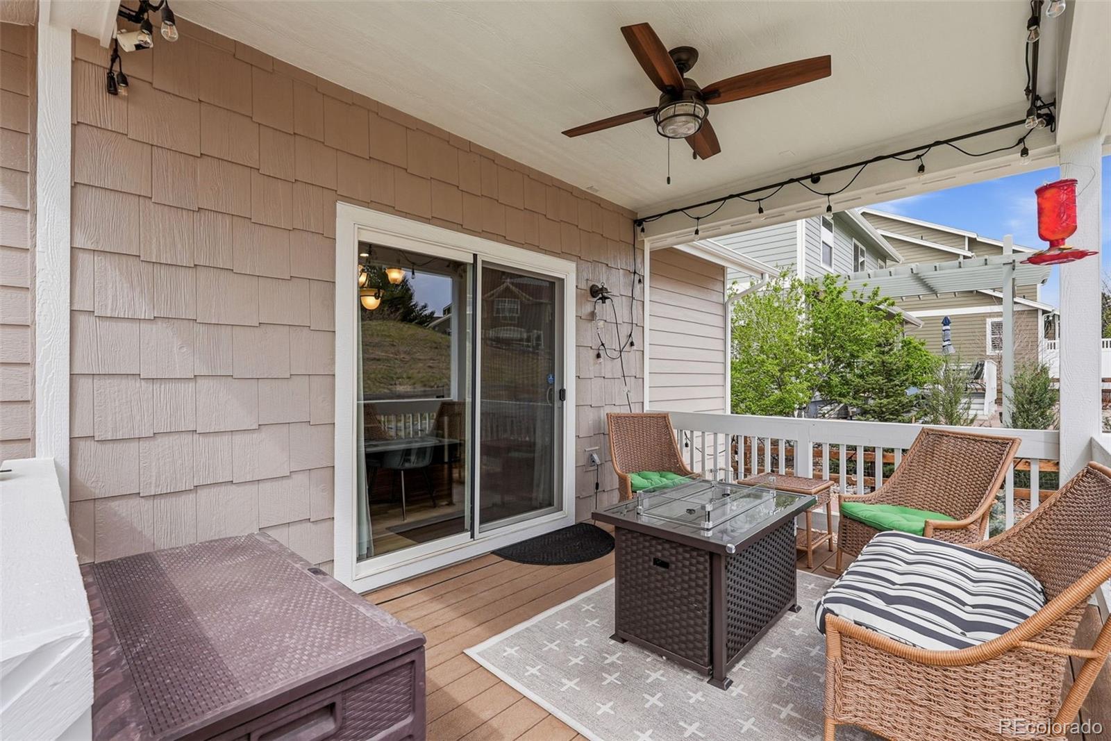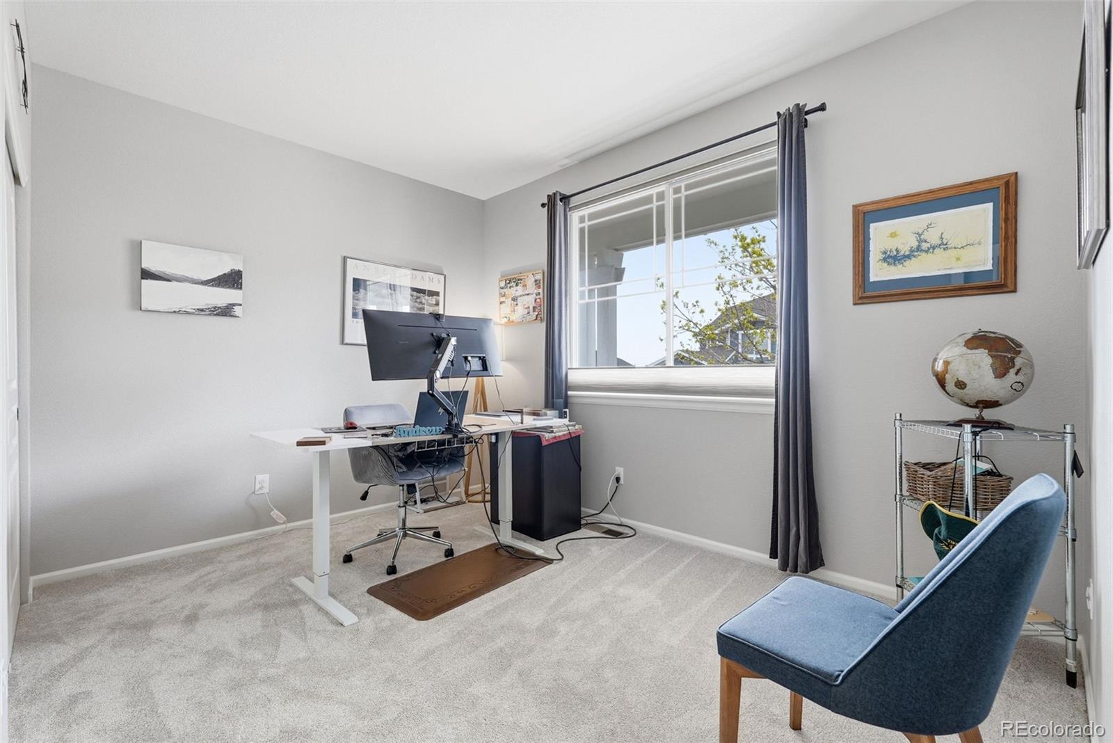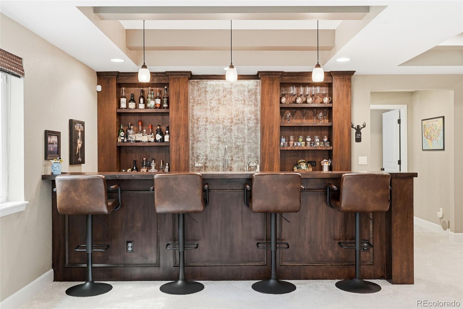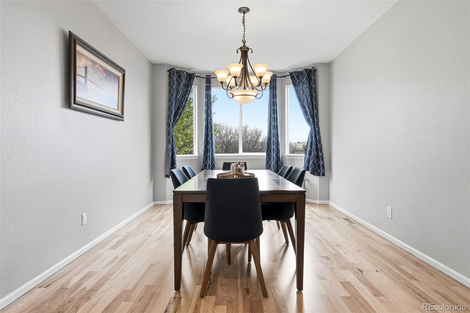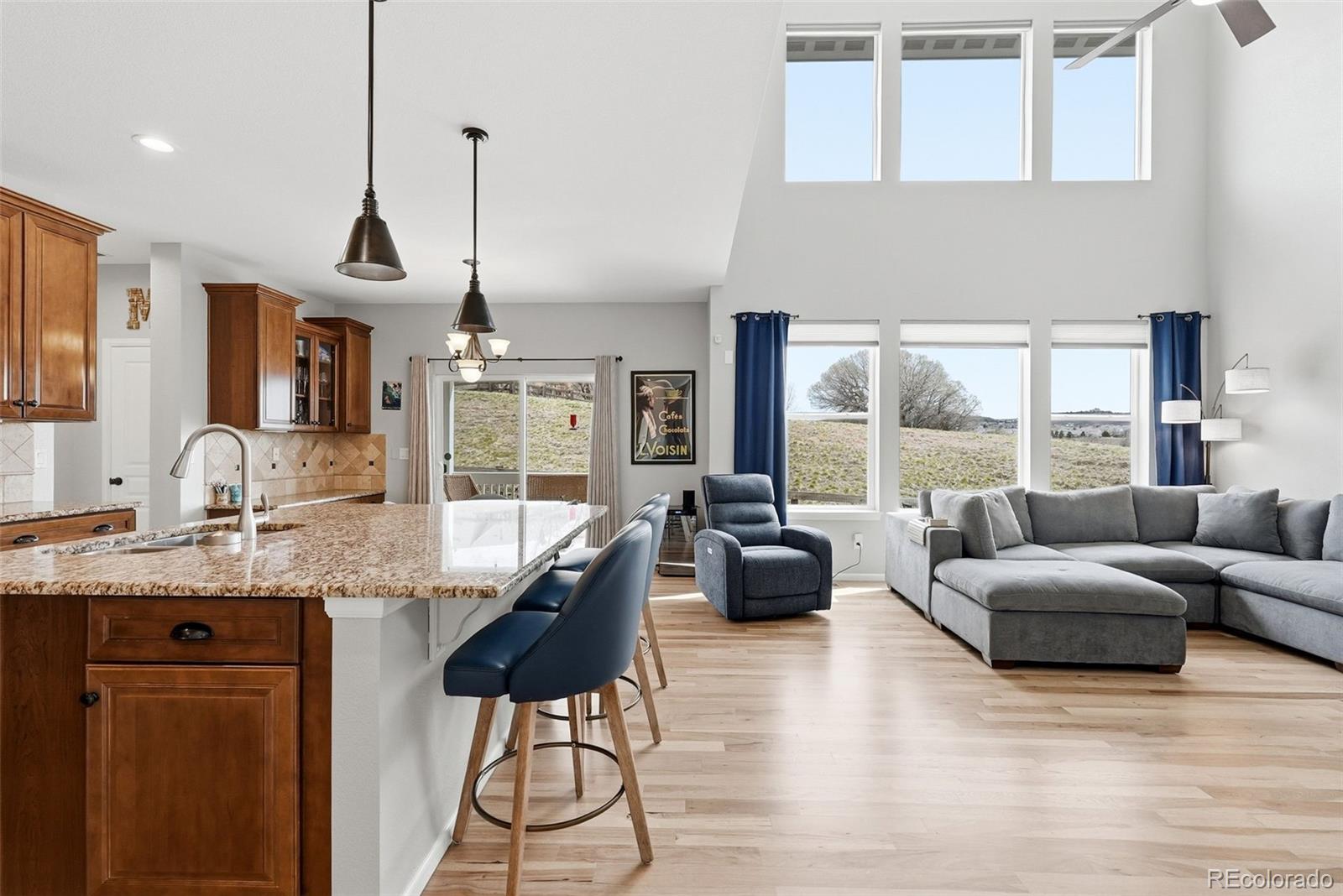 Positioned on a corner lot backing to open space, this home offers a rare combination of privacy, views, and direct access to trails, parks, and community amenities in The Meadows. Just a short walk to the neighborhood pool and playground, the location makes everyday living easy. As you enter, you'll notice newly refinished hardwood floors throughout the main level and fresh interior paint, creating a clean and updated feel. The main level includes a private office with a closet, offering flexibility for a true fifth bedroom or a work-from-home setup. High ceilings and open living areas connect seamlessly to the kitchen and dining space. The kitchen features stainless steel appliances, ample storage, and an easy flow to the outdoor space. Out back, you'll find a private deck with a firepit and usable yard space. Upstairs, the primary suite offers a spacious retreat with a large bedroom, five-piece bathroom, and generous closet space. Additional bedrooms provide flexibility for guests, family, or workspace. The finished basement adds valuable square footage with a built-out bar area and dedicated workout space, making it ideal for entertaining or everyday use. Recent updates include interior and exterior paint, refinished hardwood floors, new blinds, updated lighting and ceiling fans, along with key maintenance items such as duct cleaning, a water softener with carbon filter, water pressure valve, new garbage disposal, and a replaced garage door panel. A well-maintained home with meaningful updates, functional living spaces, and a location that connects directly to everything The Meadows has to offer.