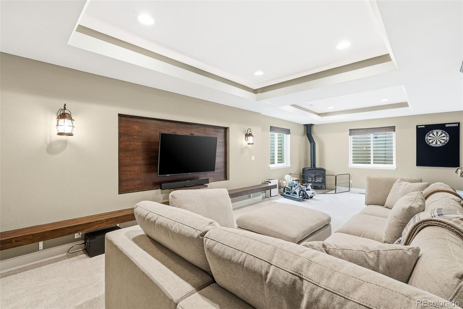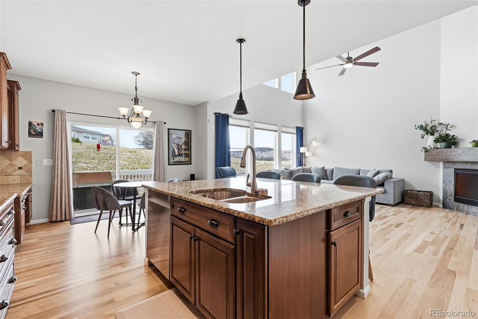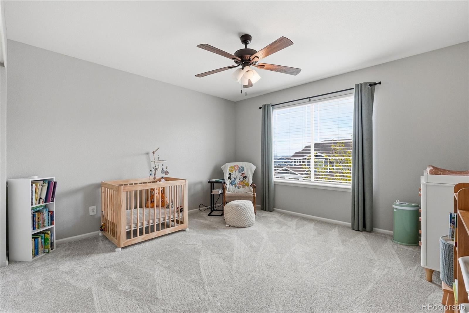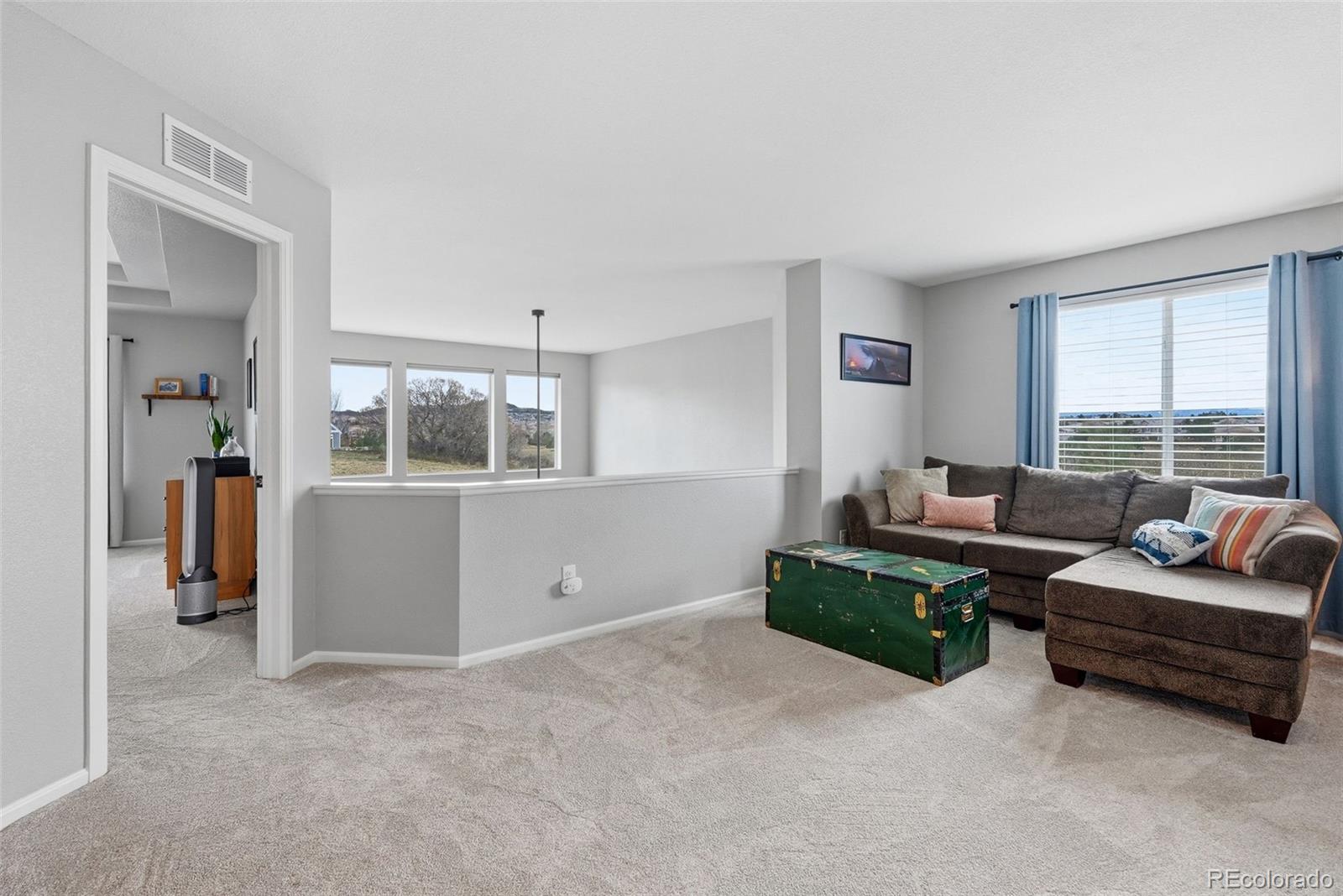 Positioned on a corner lot backing to open space, this home offers a rare combination of privacy, views, and direct access to trails, parks, and community amenities in The Meadows. Just a short walk to the neighborhood pool and playground, the location makes everyday living easy. As you enter, you'll notice newly refinished hardwood floors throughout the main level and fresh interior paint, creating a clean and updated feel. The main level includes a private office with a closet, offering flexibility for a true fifth bedroom or a work-from-home setup. High ceilings and open living areas connect seamlessly to the kitchen and dining space. The kitchen features stainless steel appliances, ample storage, and an easy flow to the outdoor space. Out back, you'll find a private deck with a firepit and usable yard space. Upstairs, the primary suite offers a spacious retreat with a large bedroom, five-piece bathroom, and generous closet space. Additional bedrooms provide flexibility for guests, family, or workspace. The finished basement adds valuable square footage with a built-out bar area and dedicated workout space, making it ideal for entertaining or everyday use. Recent updates include interior and exterior paint, refinished hardwood floors, new blinds, updated lighting and ceiling fans, along with key maintenance items such as duct cleaning, a water softener with carbon filter, water pressure valve, new garbage disposal, and a replaced garage door panel. A well-maintained home with meaningful updates, functional living spaces, and a location that connects directly to everything The Meadows has to offer.