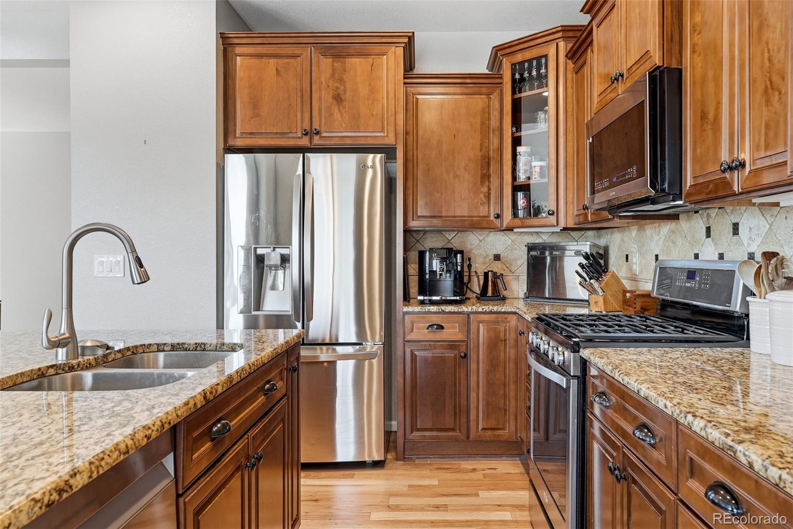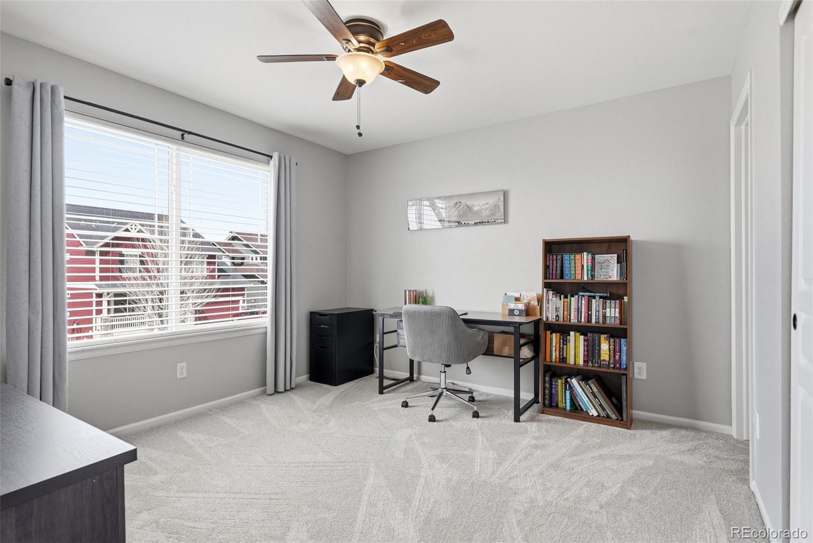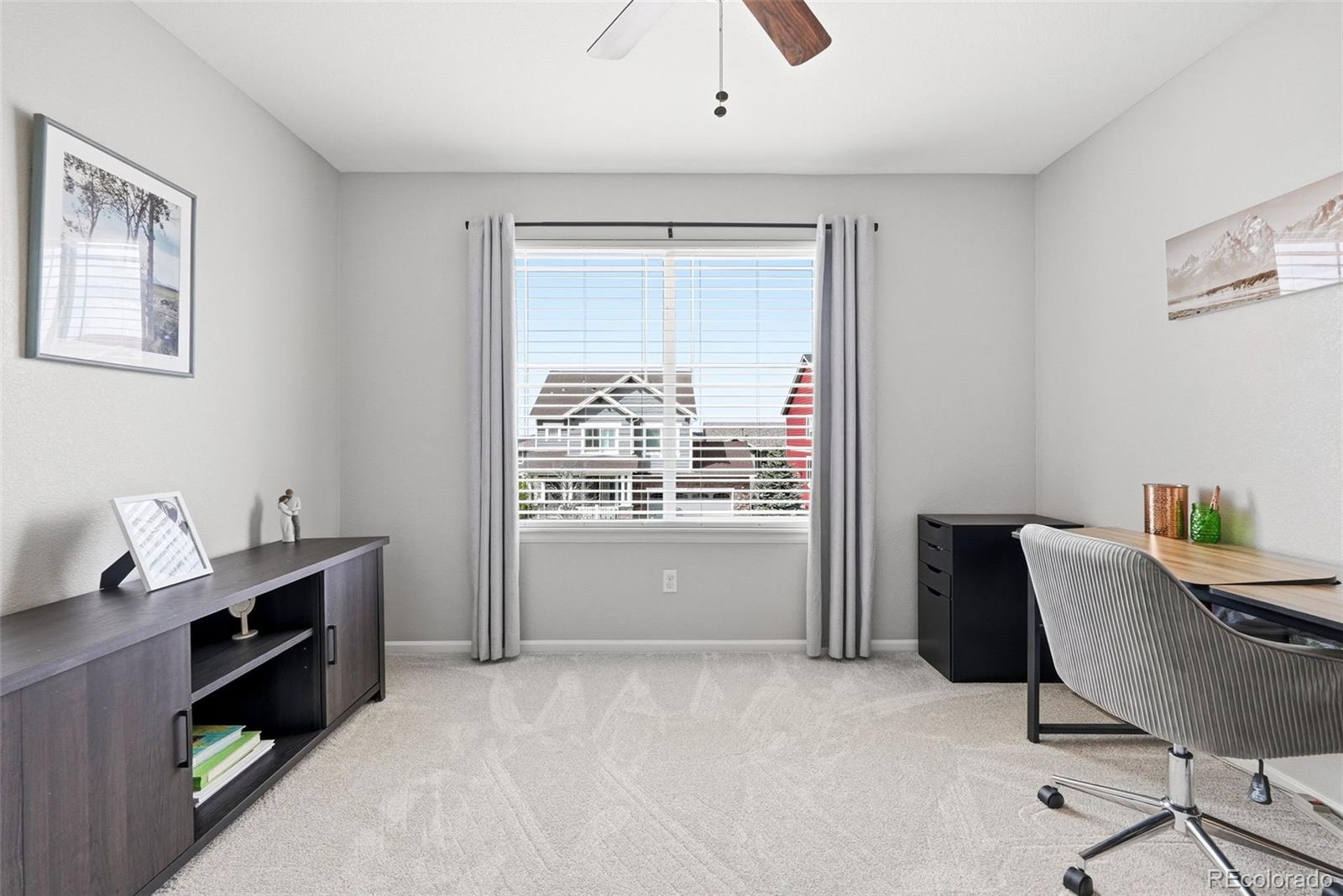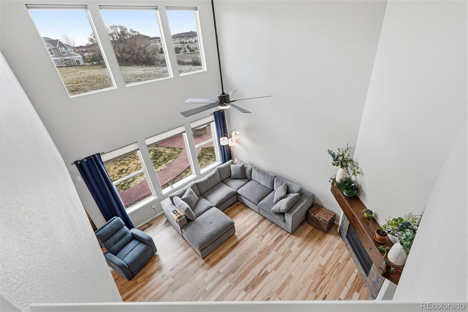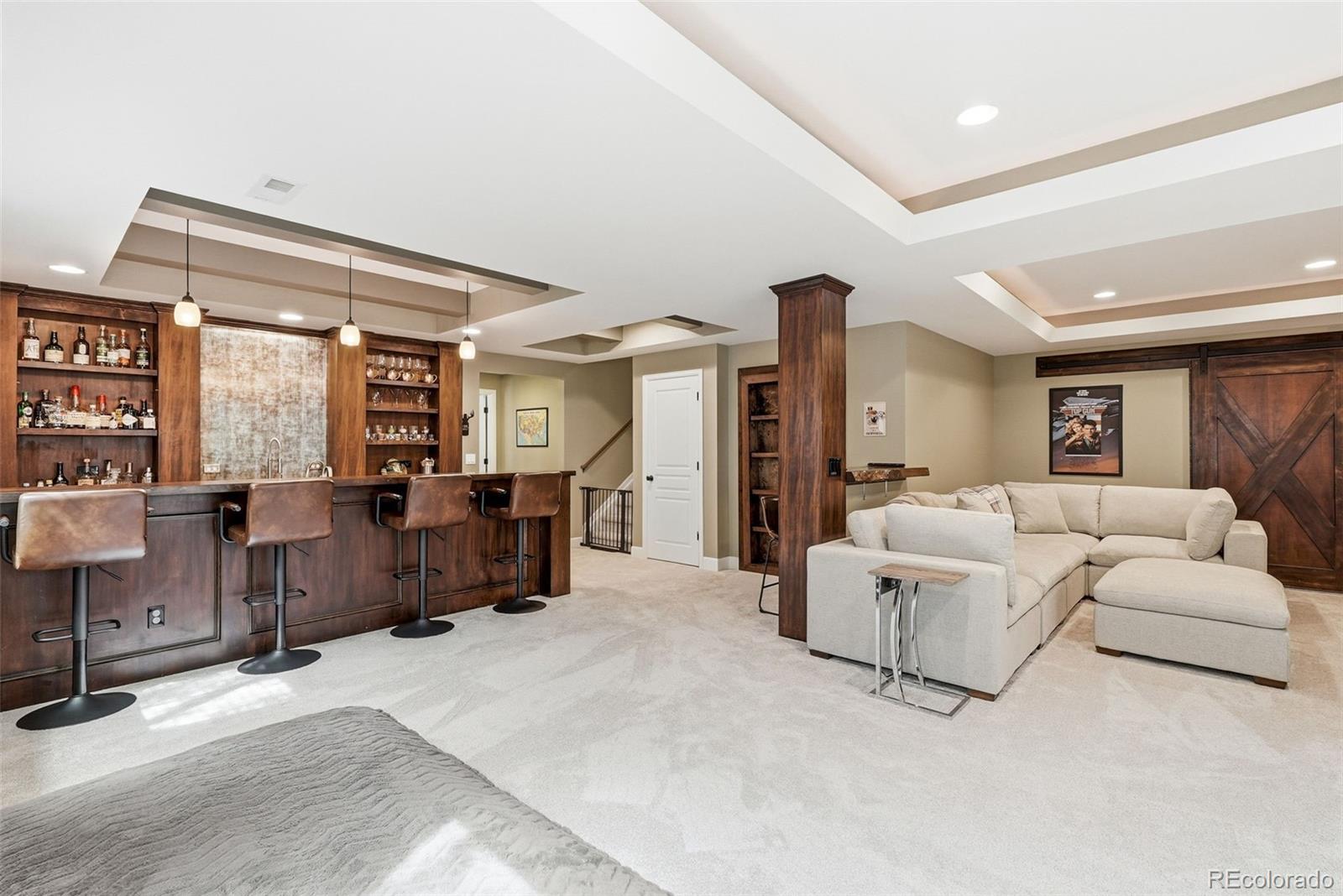 Positioned on a corner lot backing to open space, this home offers a rare combination of privacy, views, and direct access to trails, parks, and community amenities in The Meadows. Just a short walk to the neighborhood pool and playground, the location makes everyday living easy. As you enter, you'll notice newly refinished hardwood floors throughout the main level and fresh interior paint, creating a clean and updated feel. The main level includes a private office with a closet, offering flexibility for a true fifth bedroom or a work-from-home setup. High ceilings and open living areas connect seamlessly to the kitchen and dining space. The kitchen features stainless steel appliances, ample storage, and an easy flow to the outdoor space. Out back, you'll find a private deck with a firepit and usable yard space. Upstairs, the primary suite offers a spacious retreat with a large bedroom, five-piece bathroom, and generous closet space. Additional bedrooms provide flexibility for guests, family, or workspace. The finished basement adds valuable square footage with a built-out bar area and dedicated workout space, making it ideal for entertaining or everyday use. Recent updates include interior and exterior paint, refinished hardwood floors, new blinds, updated lighting and ceiling fans, along with key maintenance items such as duct cleaning, a water softener with carbon filter, water pressure valve, new garbage disposal, and a replaced garage door panel. A well-maintained home with meaningful updates, functional living spaces, and a location that connects directly to everything The Meadows has to offer.