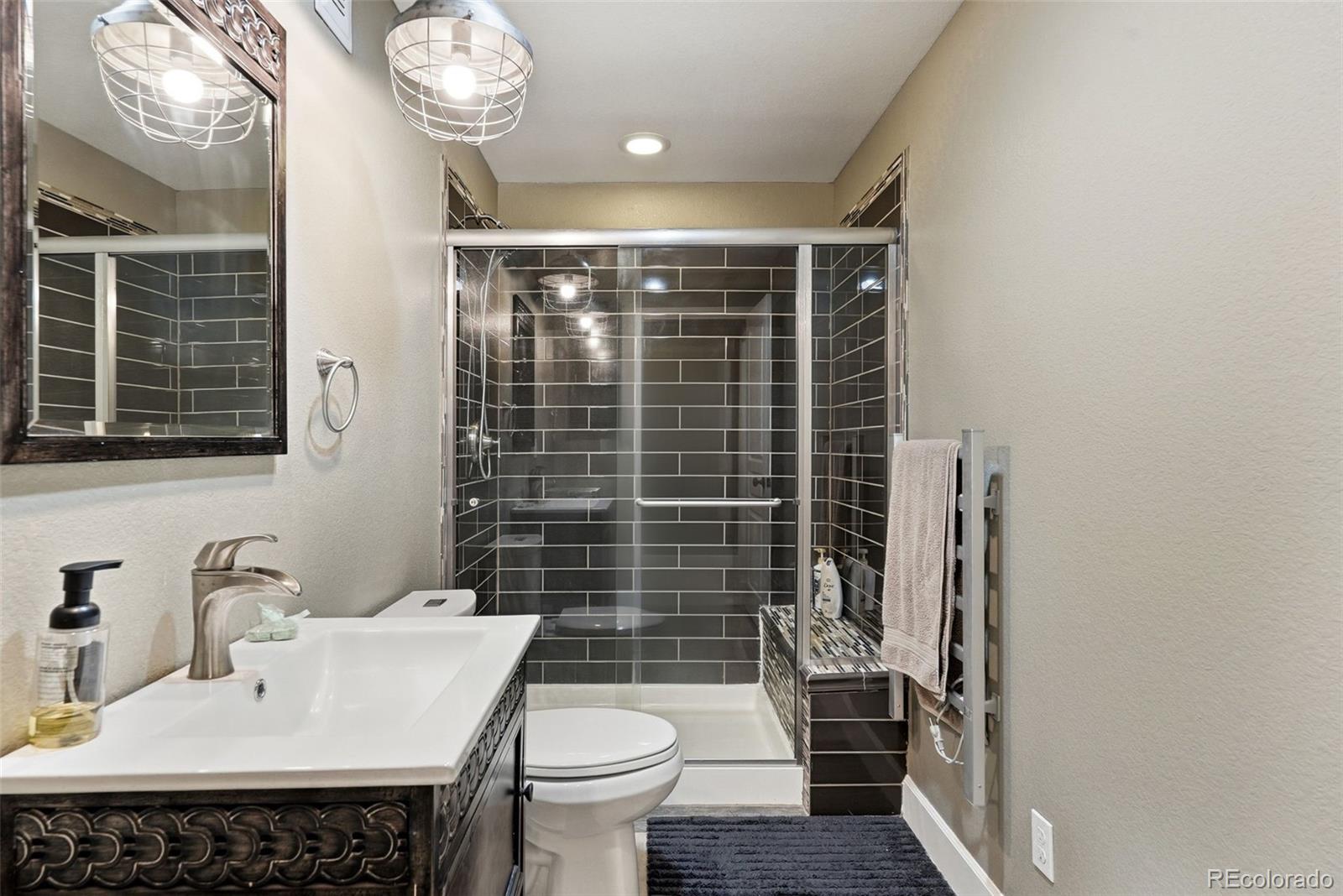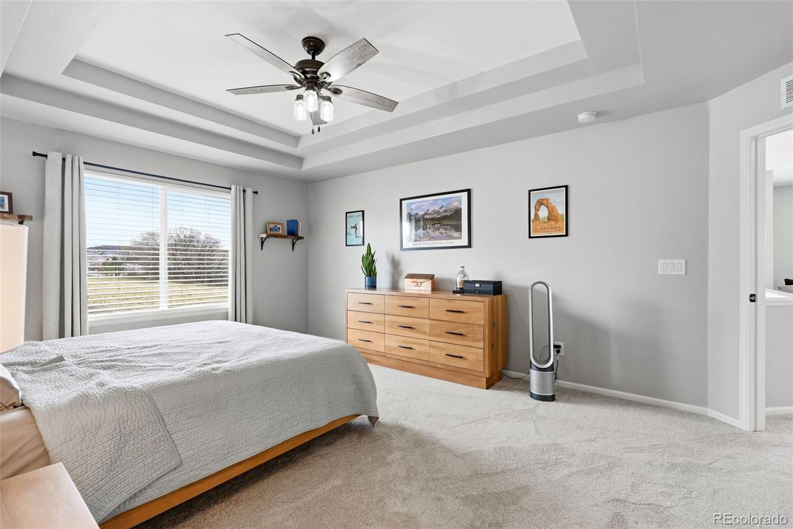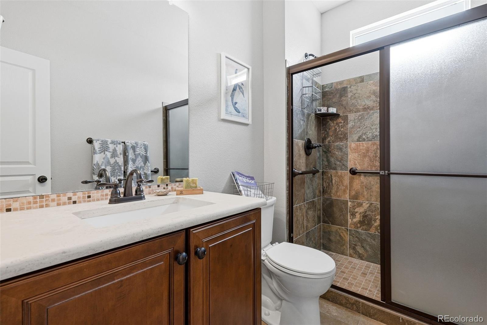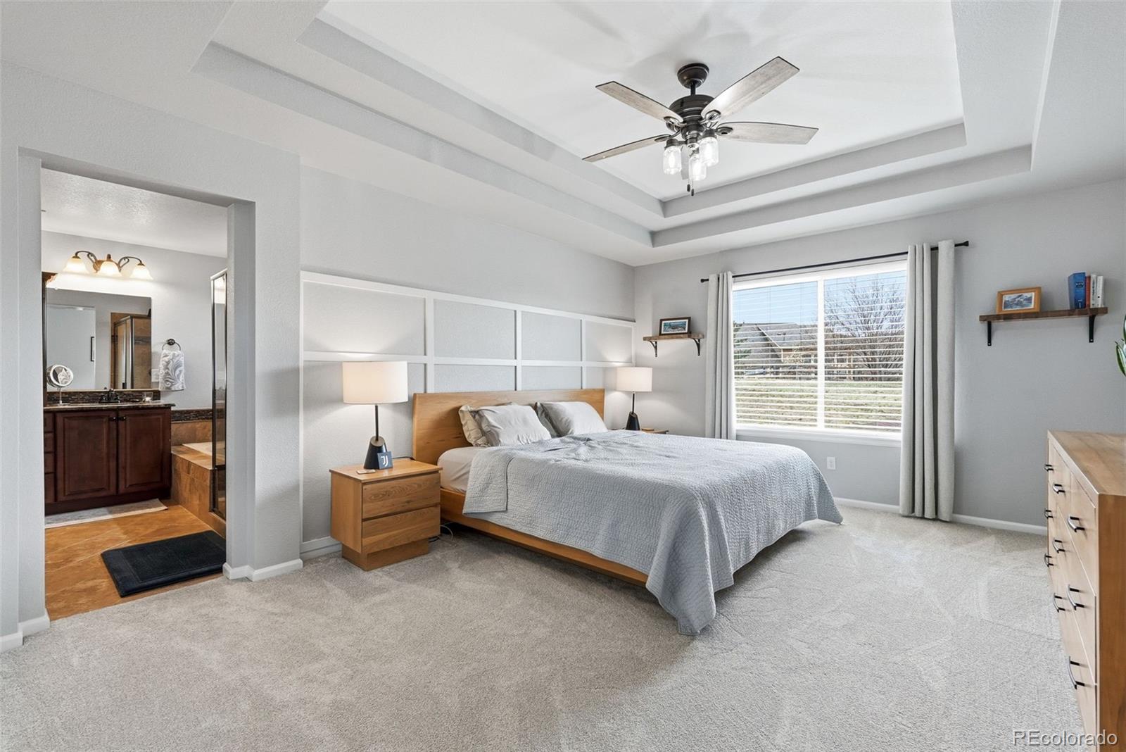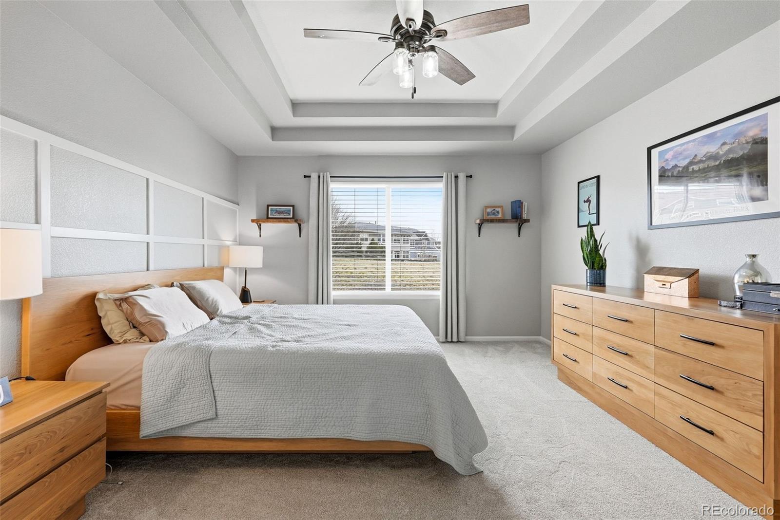 Positioned on a corner lot backing to open space, this home offers a rare combination of privacy, views, and direct access to trails, parks, and community amenities in The Meadows. Just a short walk to the neighborhood pool and playground, the location makes everyday living easy. As you enter, you'll notice newly refinished hardwood floors throughout the main level and fresh interior paint, creating a clean and updated feel. The main level includes a private office with a closet, offering flexibility for a true fifth bedroom or a work-from-home setup. High ceilings and open living areas connect seamlessly to the kitchen and dining space. The kitchen features stainless steel appliances, ample storage, and an easy flow to the outdoor space. Out back, you'll find a private deck with a firepit and usable yard space. Upstairs, the primary suite offers a spacious retreat with a large bedroom, five-piece bathroom, and generous closet space. Additional bedrooms provide flexibility for guests, family, or workspace. The finished basement adds valuable square footage with a built-out bar area and dedicated workout space, making it ideal for entertaining or everyday use. Recent updates include interior and exterior paint, refinished hardwood floors, new blinds, updated lighting and ceiling fans, along with key maintenance items such as duct cleaning, a water softener with carbon filter, water pressure valve, new garbage disposal, and a replaced garage door panel. A well-maintained home with meaningful updates, functional living spaces, and a location that connects directly to everything The Meadows has to offer.