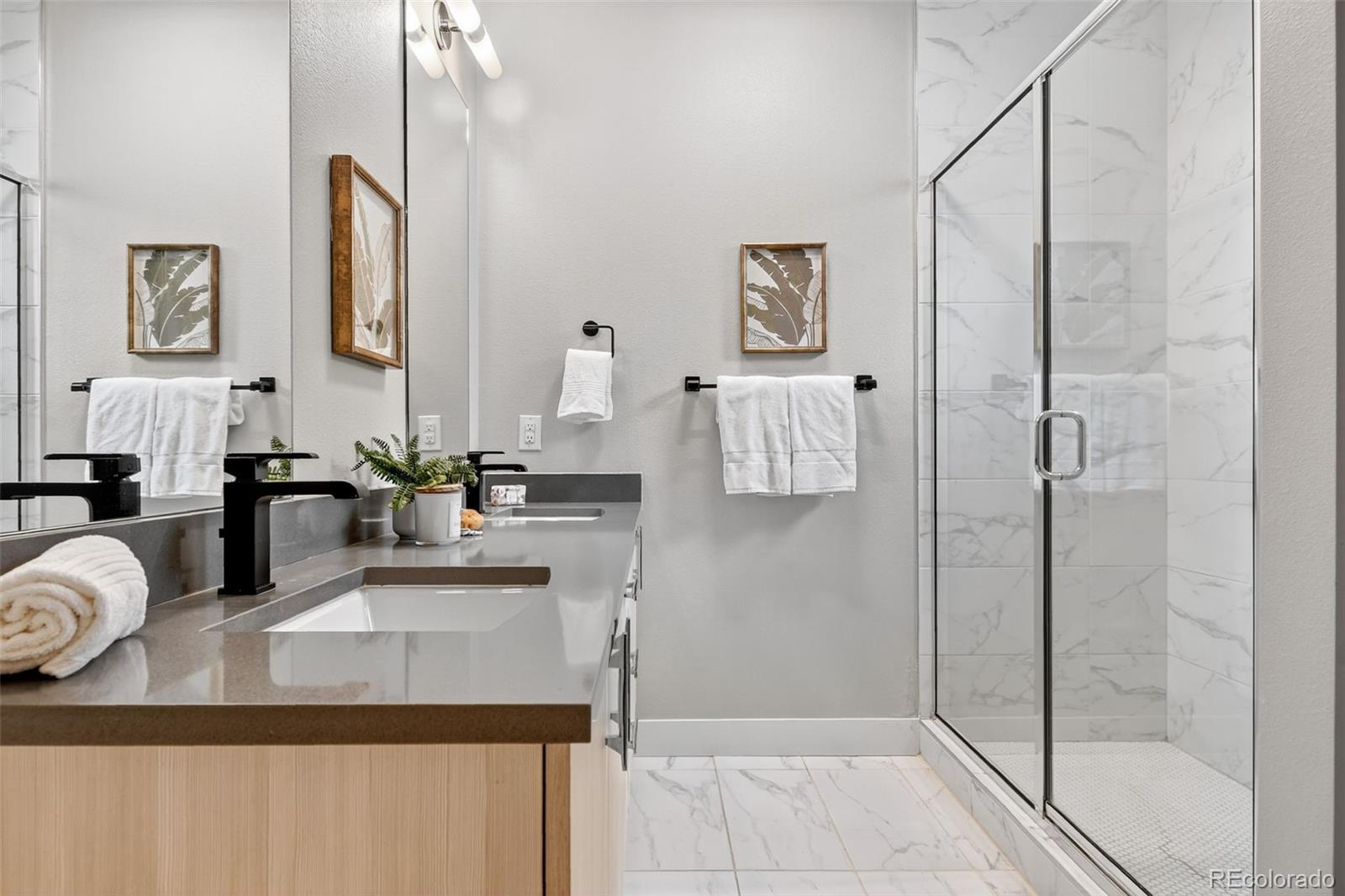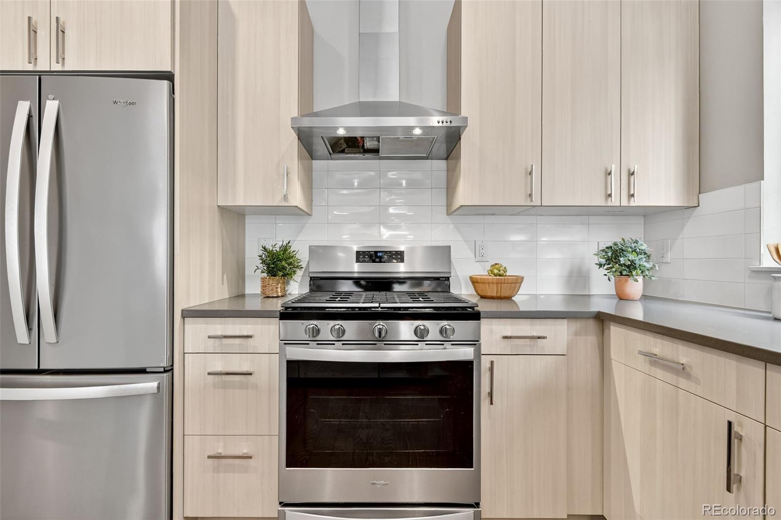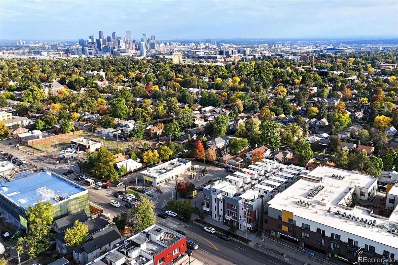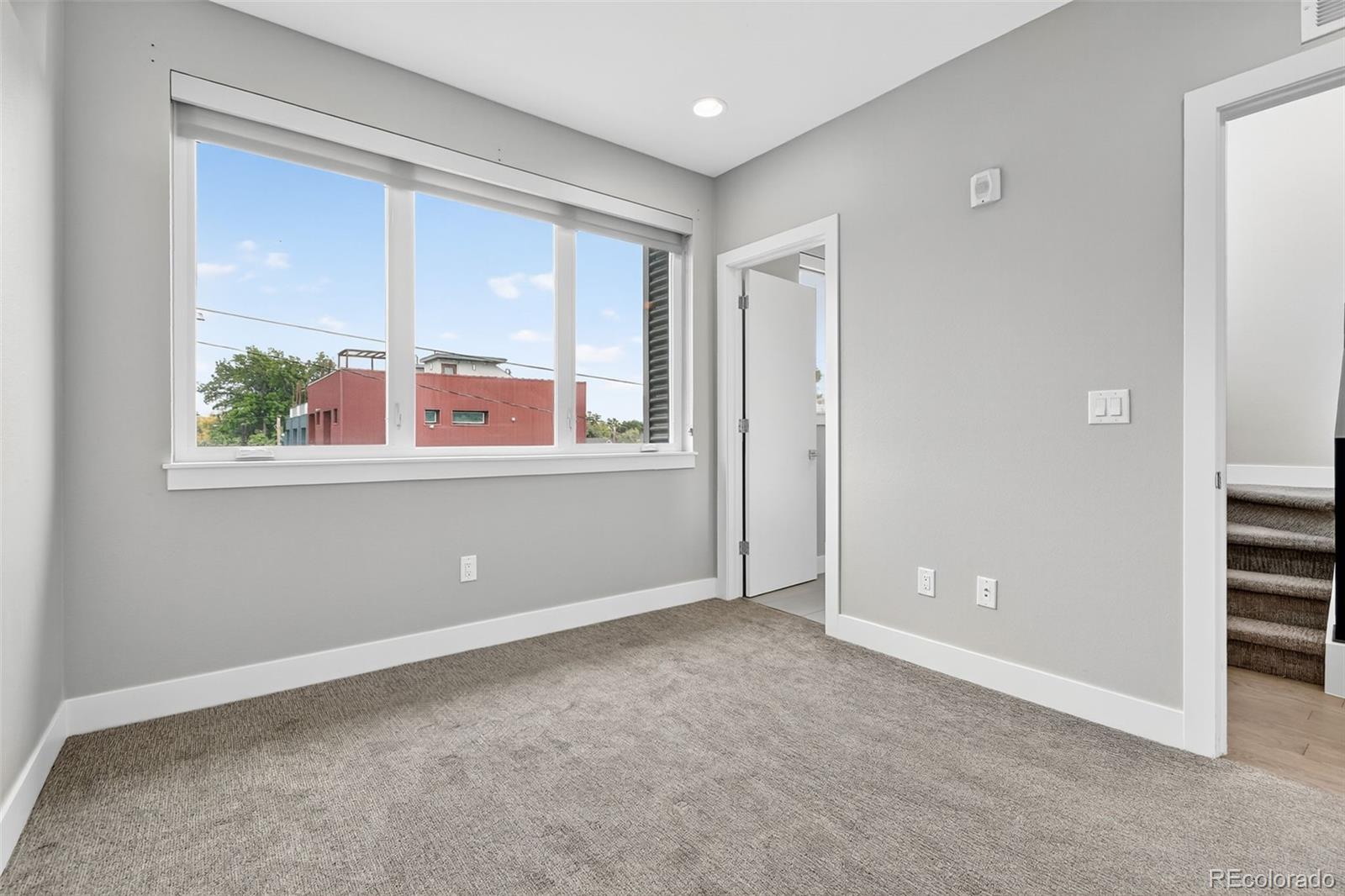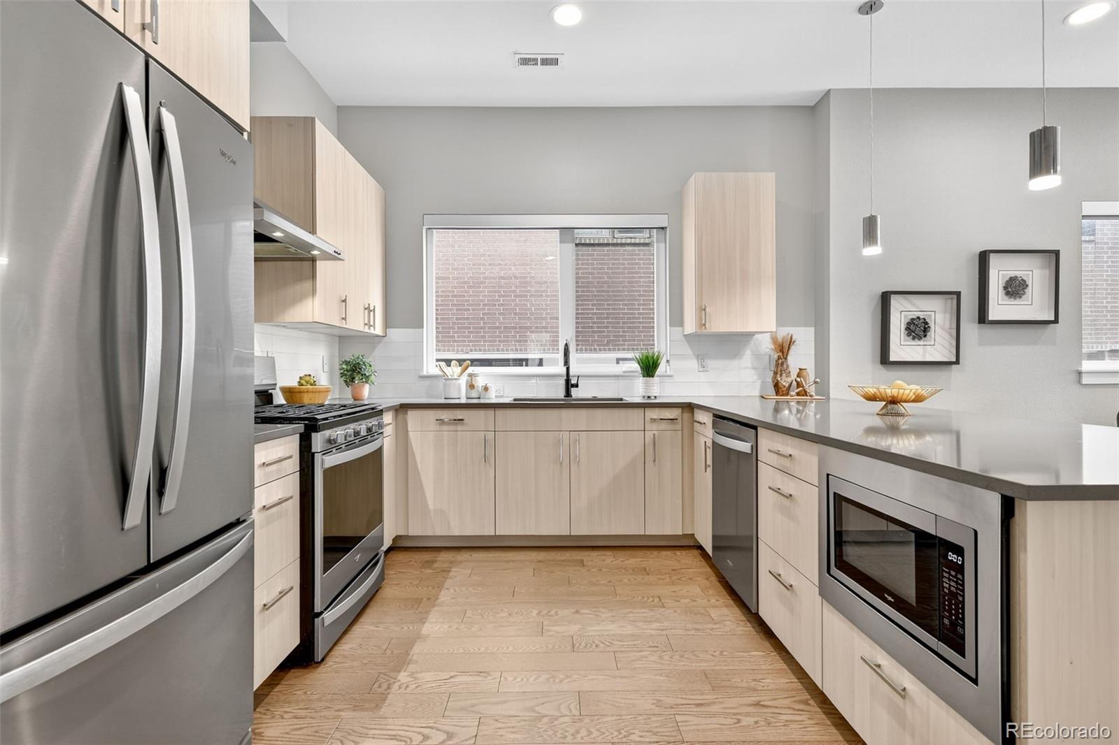 Located in the heart of Denver, this modern townhome offers effortless access to some of the city's most vibrant destinations; the Highlands, Tennyson Street, and downtown are all just minutes away. Inside, the open and light-filled layout connects the living, dining, and kitchen areas, creating an ideal space for both relaxing and entertaining. The kitchen features sleek cabinetry, quartz countertops, stainless steel appliances, and a generous counter that anchors the main level. Two outdoor spaces on the main level include a balcony off the living room and a Juliet balcony off the den or office area. Upstairs, the spacious primary suite includes a walk-in closet and a well-appointed bathroom with dual sinks and a large shower. An additional bedroom with its own ensuite bathroom provides privacy for kids or guests. A convenient powder bath is located on the main floor, and the laundry is thoughtfully positioned near the bedrooms. The entry level features a third bedroom and full bathroom, perfect for a private office or guest suite. The rooftop deck delivers city views and plenty of space to host friends and family. The oversized one-car garage is equipped with a lift system, allowing room for a second vehicle. With its clean modern design and low-maintenance exterior, this home offers the best of city living without the upkeep.